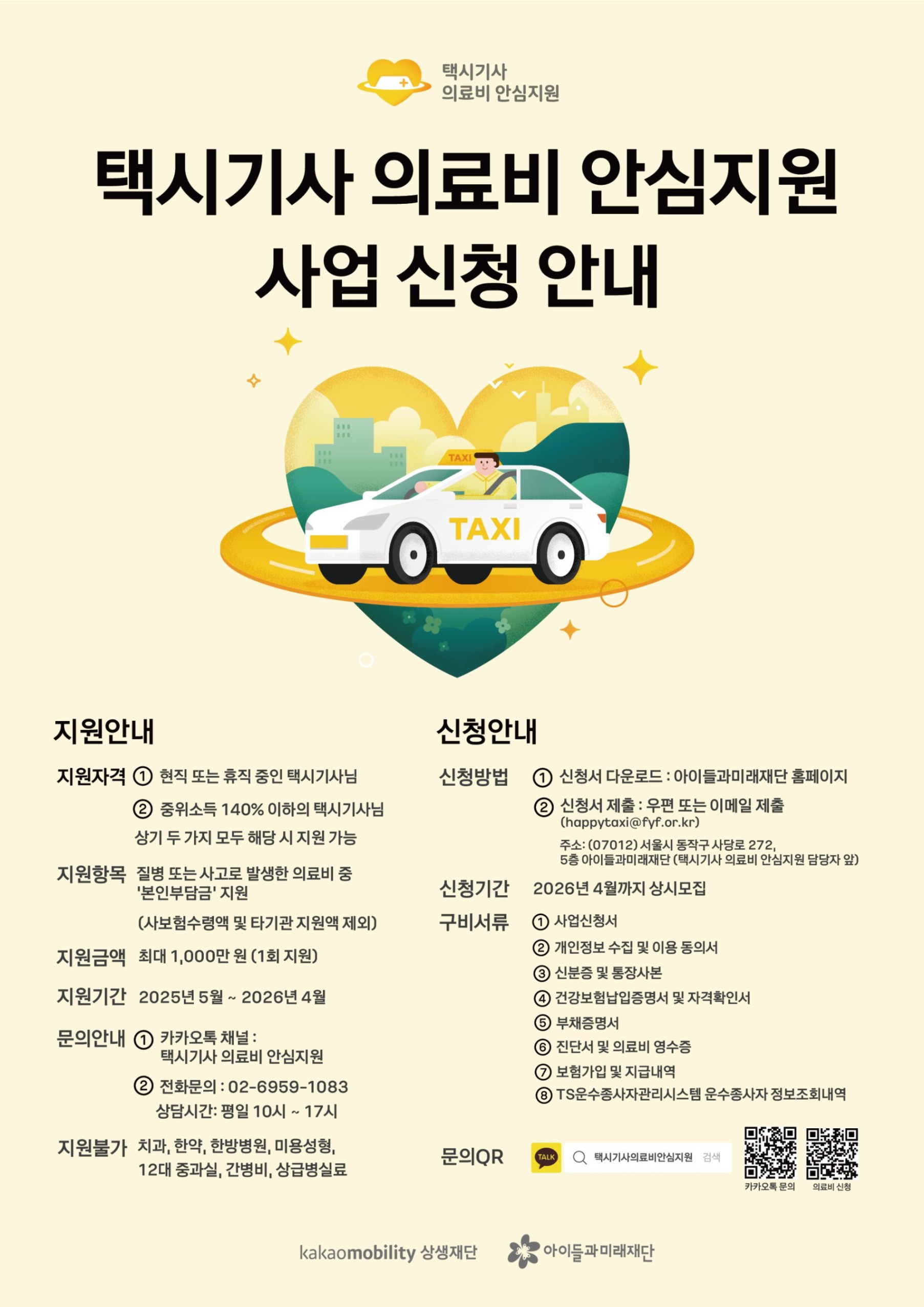 - 카카오톡 채널 문의 : 택시기사 의료비 안심지원